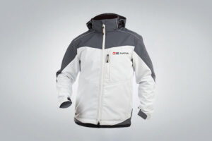JUB Profi Club átmeneti softshell kabát (Dassy). Vízálló, szélálló, fleece bélésű, fehér-szürke. Divatos szabású, tartós, kiváló minőségű anyagokból.