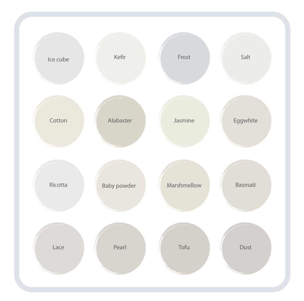 Színkártyánkon 16 törtfehér árnyalat található, amelyeket az alaptónusuk szerint négy csoportba soroltunk: